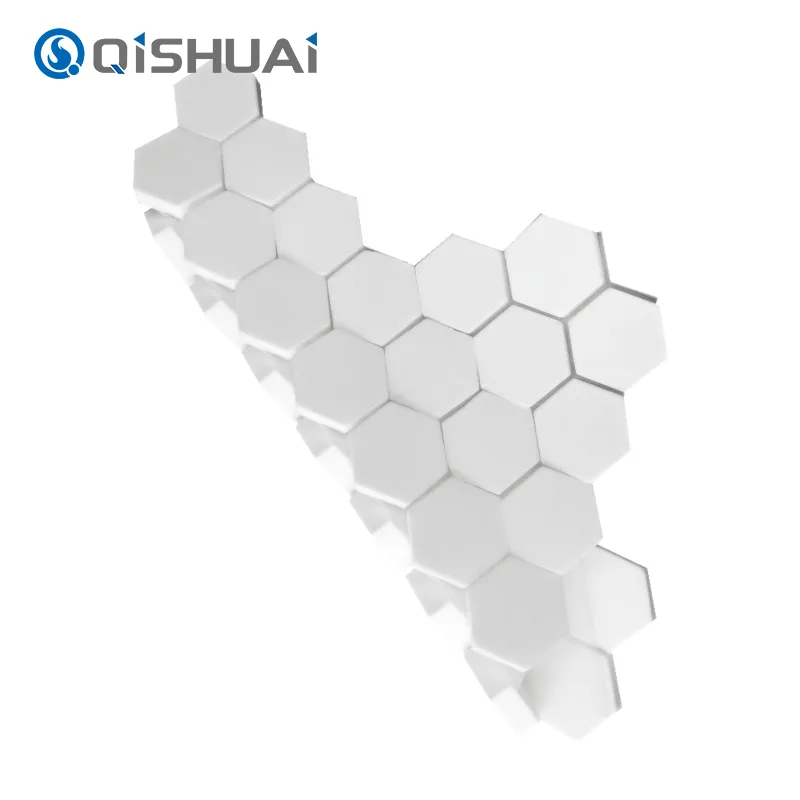 Shandong Qishuai Wear-Resistant Equipment Co., Ltd.s høykvalitets Hex Alumina Ceramic Mosaic, som illustrert, har en særegen sekskantet design som skiller dem fra vanlige firkantede eller sirkulære fliser. Hver sekskantet alumina keramikkmosaikkfliser har glatte, flytende kanter med utsøkte detaljer som er godt synlige.
